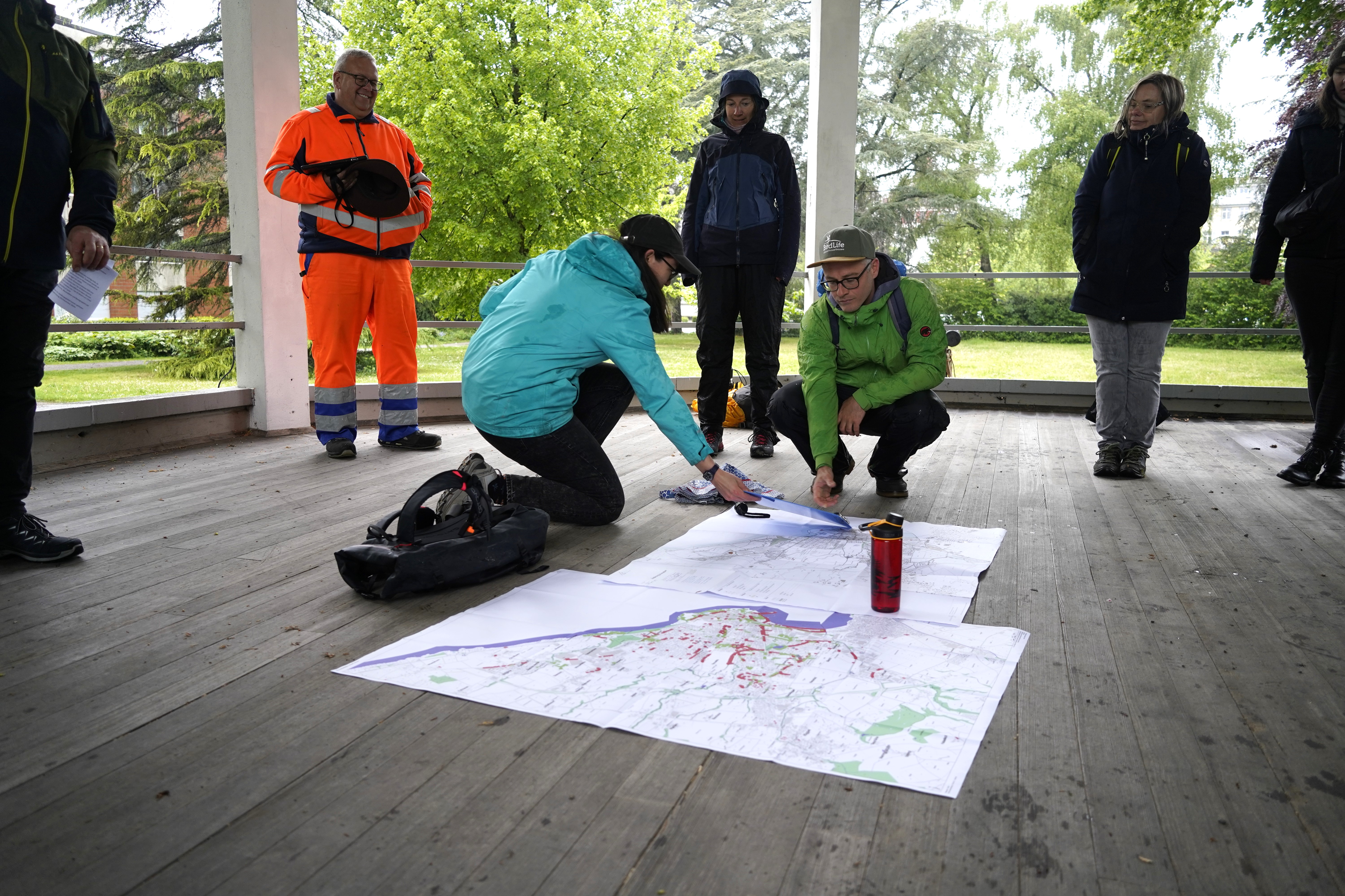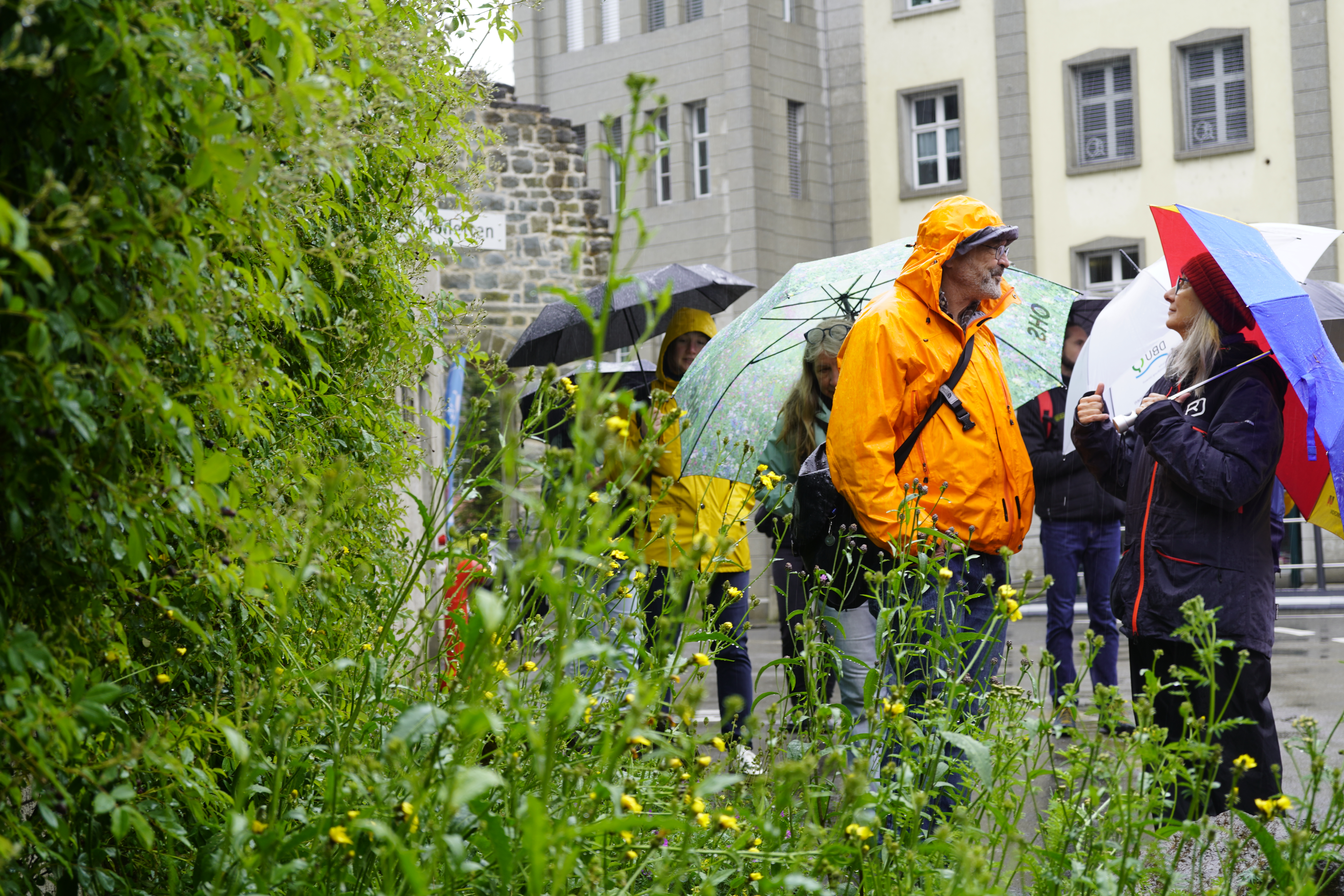 Trotz des Regens wurde immer wieder Halt gemacht, um die verschiedenesten Maßnahmen zur Förderung der Biodiversität zu sehen.