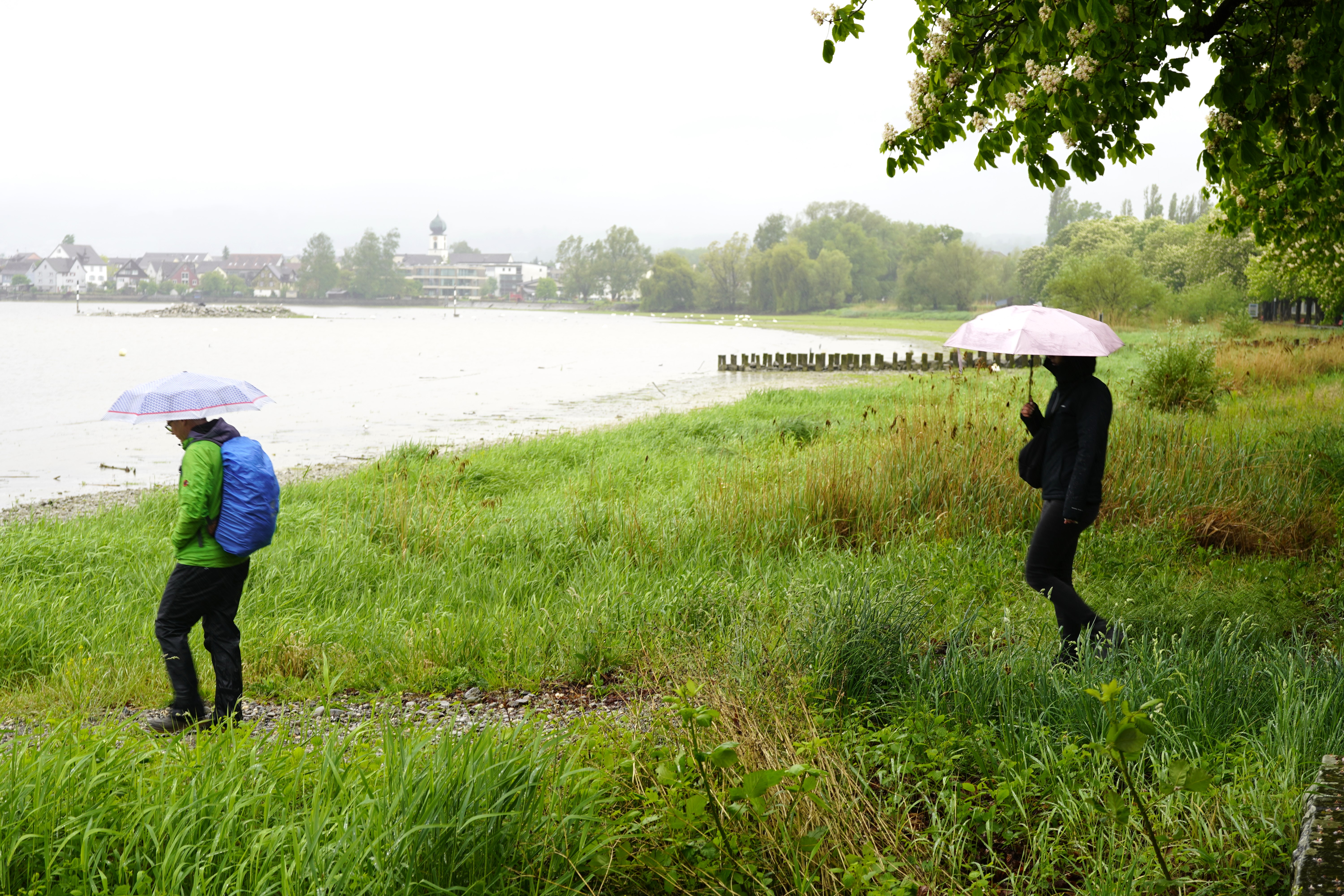 Die Exkursion startete am ersten Tag bei der Arboner Bucht, wo eindrücklich aufgezeigt wurde, wie durch Renaturierung ökologisch wertvolle Lebensräume geschaffen wurden. Die Renaturierung fand in zwei Etappen zwischen 1998 und 2023 statt. Trotz Regen und eingeschränkter Sicht konnten einige Wasservögel beobachtet werden.